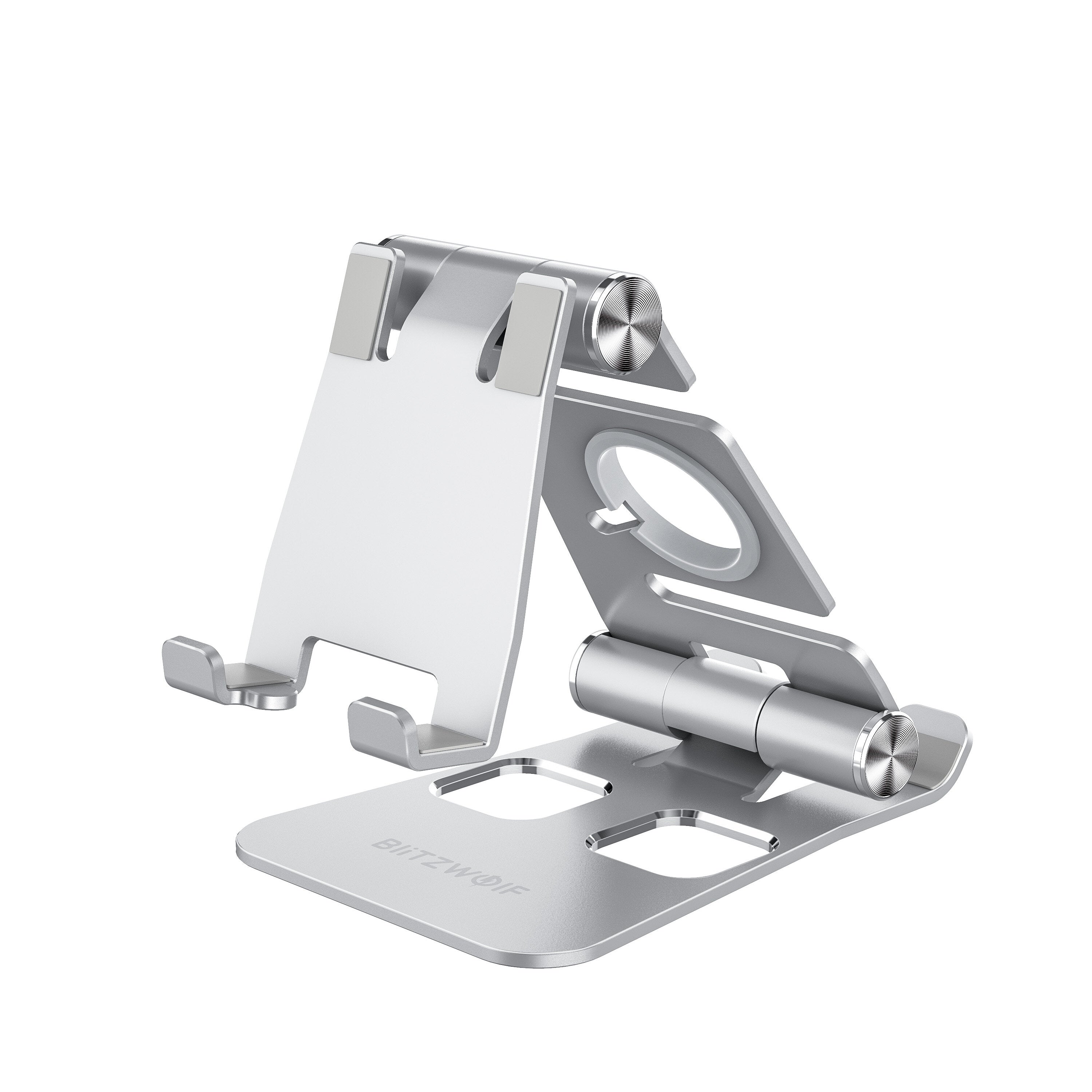 The stand provides stable support for tablets by using the theory of gravitation. No need to clamp, it's easy to take and place the tablet with one hand. The metal material, make it stable and durable, use for a long time.