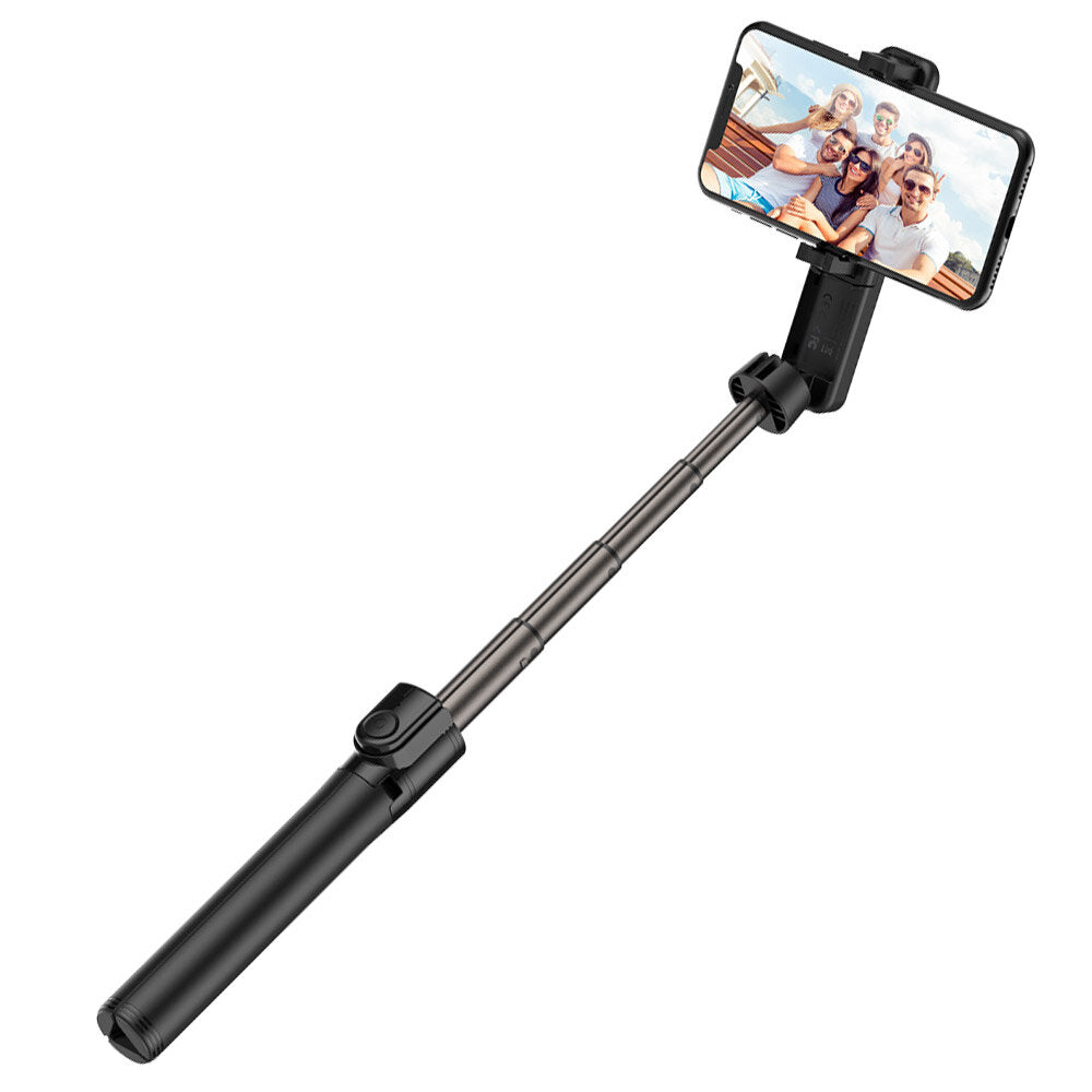 More compact than ever before. You can use the selfie stick when taking self-portraits in handle mode, recording videos, and making a live show in tripod mode. Retractable, steady, and strong aluminum material of the integrated tripod is stable and strong.
