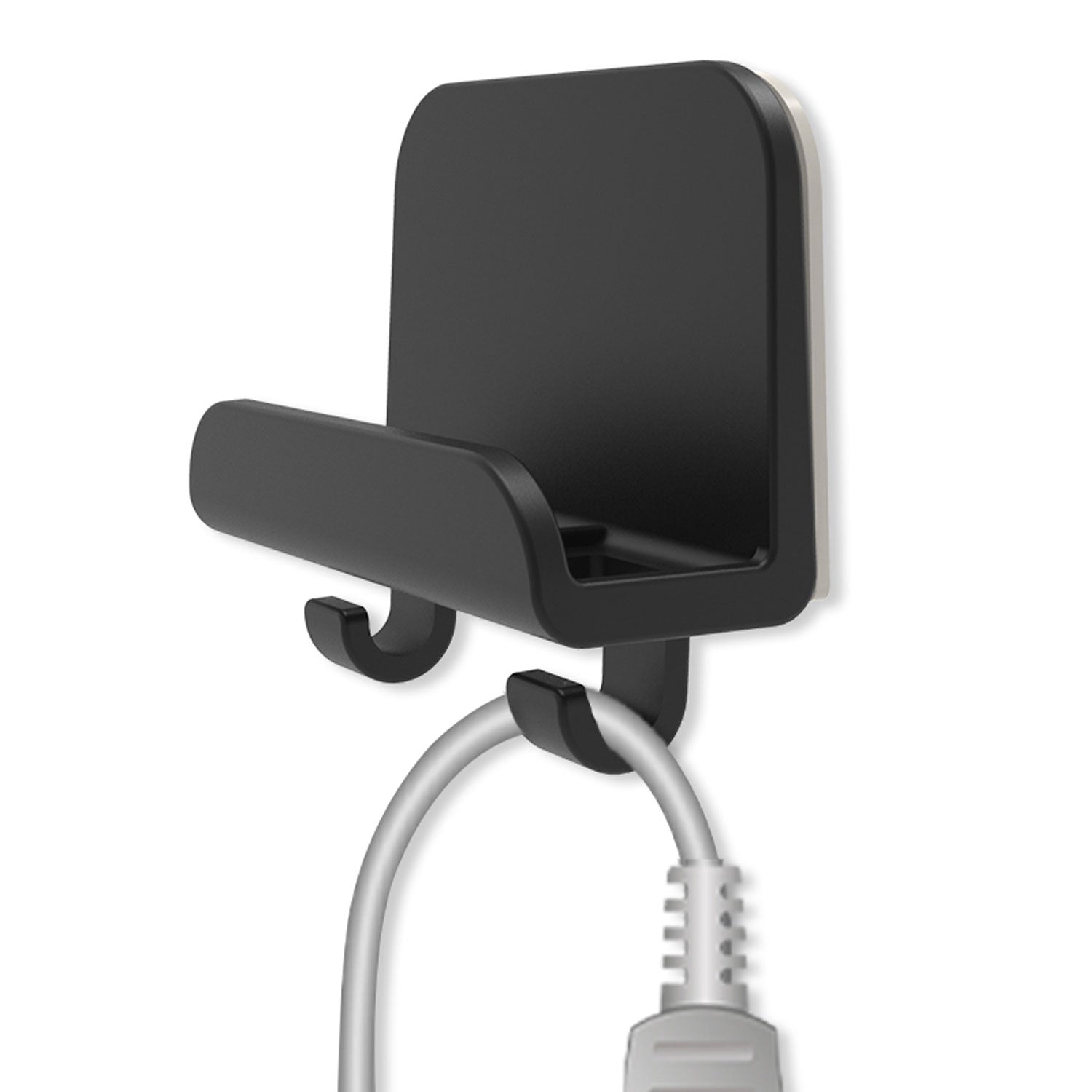 The tablet wall mount stand comes with 3 moveable pieces.  It can be freely adjusted according to different sizes of tablets or smartphones. Each piece has two hooks for easily storing charging cables.