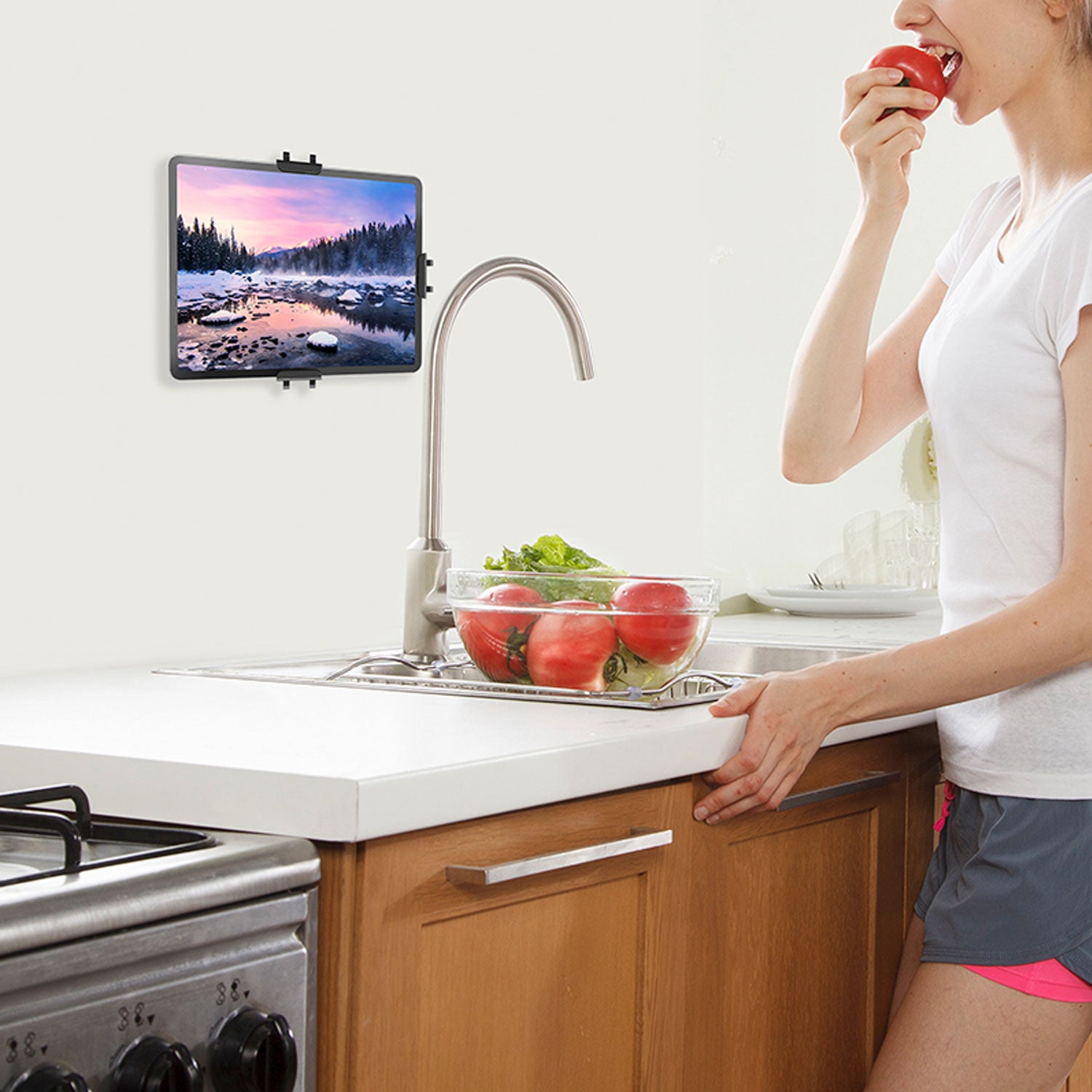 With the combination of 3 individual-piece wall mounts, it fits all mobile phones and tablets with its thickness of 0.5" or less. The 3-pieces tablet wall mount can be used as a separate hook. With the support weight 500g, it can be used in the kitchen, bedroom, living room, bathroom and more.