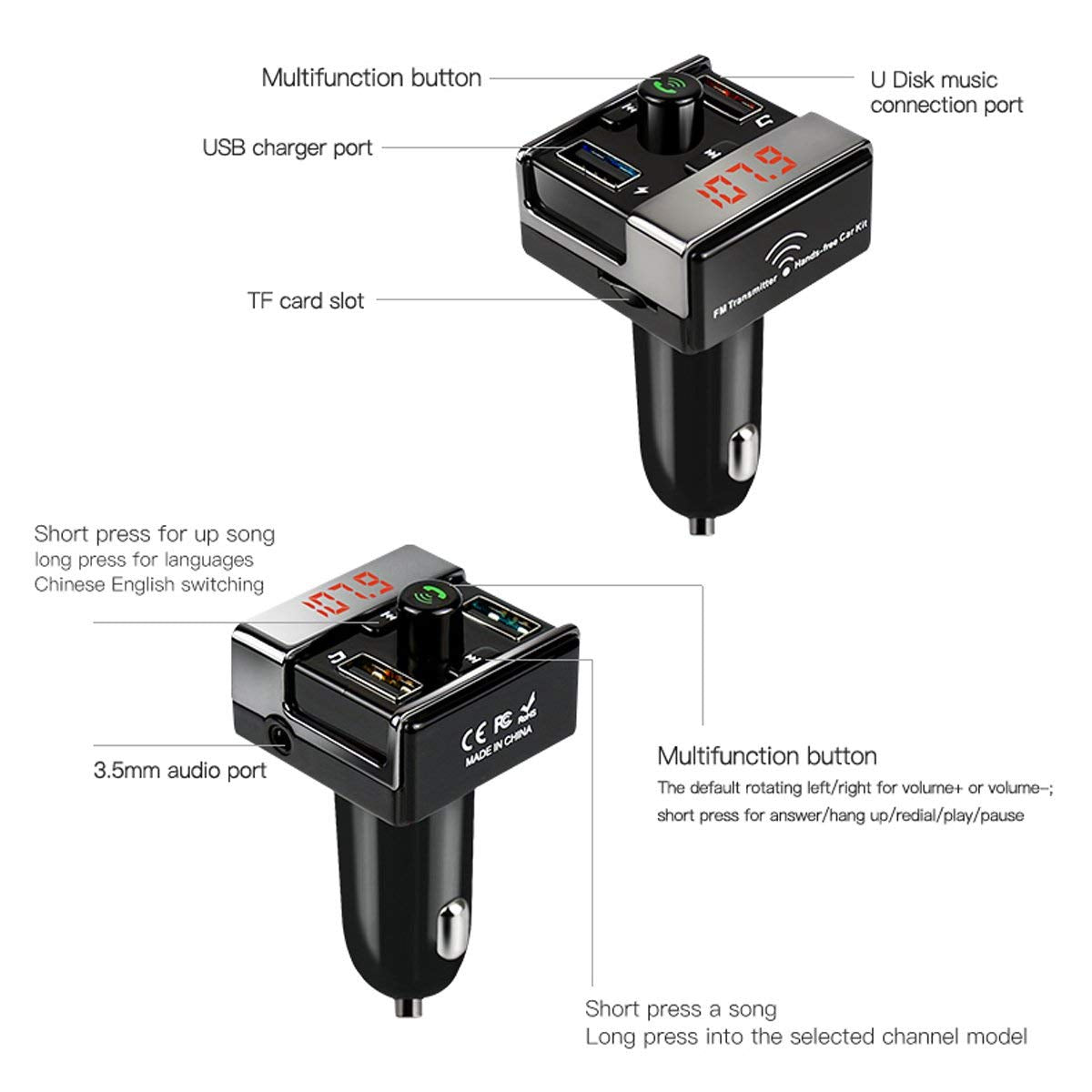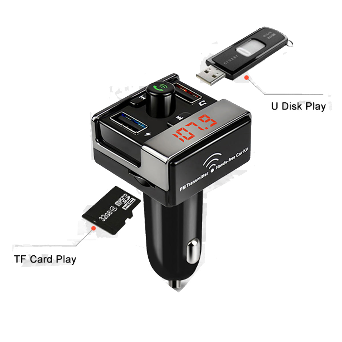 This car kit also features the handsfree function to allow you to focus on driving while on the road.
